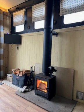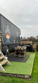 We have sympathetically converted a Luton horse lorry to provide a quirky and fun place to visit. Annie has a fabulous lounger hot tub with mood lighting which is situated to make the most of the fabulous view across the valley, she also has a Hobbit logburner which creates a lovely cosy feel. Sleeping arrangements are in the Luton area above the cab which is accessed via a ladder, this space IS RESTRICTED HEIGHT, the lounge has a sofa bed as an alternative sleeping option. Annie is fully equipped for self catering and has a mini oven, mini fridge and 2 ring hob and cold water supply with sink. A selection of games are provided and a Complimentary bubbly. The toilet is situated within the lorry. There is a fabulous verandah with seating which is accessed via the lounge and this has panoramic, far reaching views. There is a seperate horse trailer which is fitted with a large shower tray, the trailer is not heated and gives an open feeling to connect you to the outdoors. Annie is parked in a separate paddock which offers a fenced garden space.